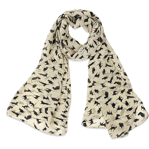 This delightful Cat Print Chiffon Long Scarf is perfect for cat lovers, featuring an array of playful, whimsical feline silhouettes. This scarf can be styled in countless ways: wrap it around your neck for a classic look, drape it over your shoulders, tie it around your waist, or use it as a chic accent on your purse or hat. This charming cat print scarf is sure to be a treasured addition to any animal lover’s collection.