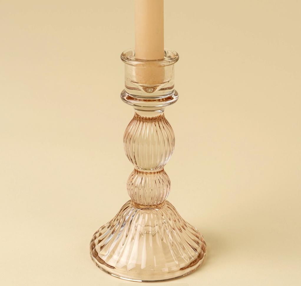 Elevate your candlelight moments with the Callista Glass Candleholder. Crafted from 100% moulded glass, this taper candle holder blends vintage-inspired charm with contemporary clarity. Its rounded silhouette and pink finish bring a soft elegance to any tablescape, mantle, or shelf, while creating the perfect setting for mood and atmosphere.