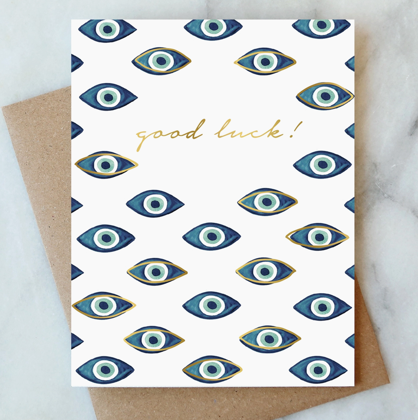 • Beautiful Hand-painted Original Watercolor evil eyes good luck congrats card