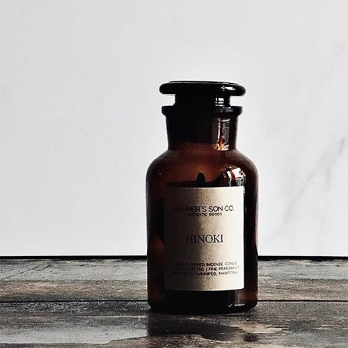 Formulated in the Farmer’s Son Co. Winnipeg fragrance lab and hand-dipped in small batches, the blend opens with lemon zest, petitgrain and clove leaf - bright, dry and gently spiced. From there, hinoki, blue cypress, olibanum, pine and moss emerge, evoking a forest path just after rain. The scent settles into a warm, grounded base of cardamom, cedarwood, patchouli and musk. Complex but clean, layered but never loud.