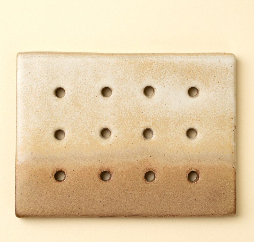 Infuse your bathroom decor with natural texture and thoughtful design using the Ombre Soap Dish, Dots. Handcrafted from glazed ceramic with a soft ombré finish, this artisan-made piece blends form and function with subtle speckling and a dotted pattern of drainage holes to keep your soap dry. Its earthy tones and smooth matte feel create a warm, grounded look at the sink.
