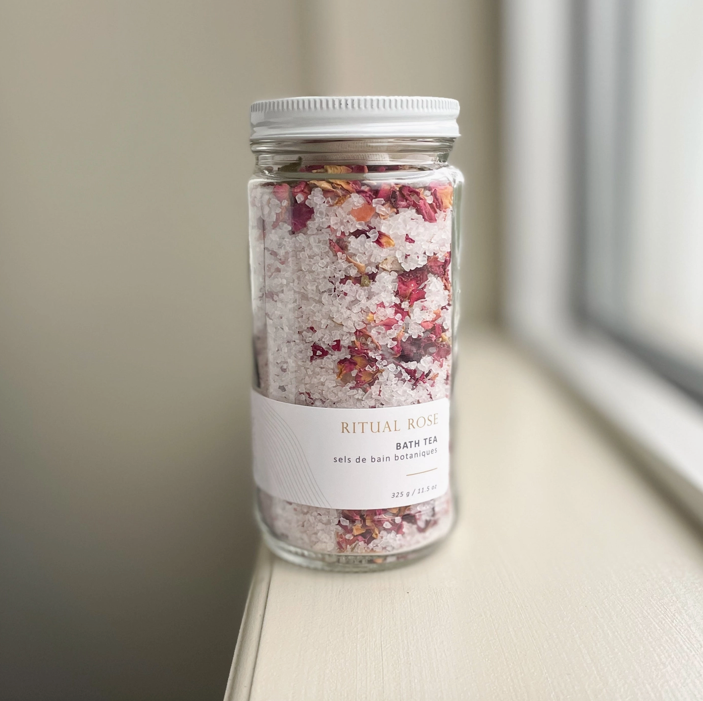 Natural Ingredients for Skin Health: Our Ritual Rose Bath Tea is crafted with natural rose petals known for their hydrating and soothing properties. These petals help to soften and moisturize the skin, leaving it feeling silky and rejuvenated.