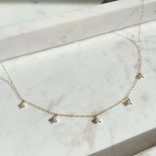5sweet little freshwater pearls beautifully anchored on our favorite chain. A classic and simple necklace to wear alone or layer.