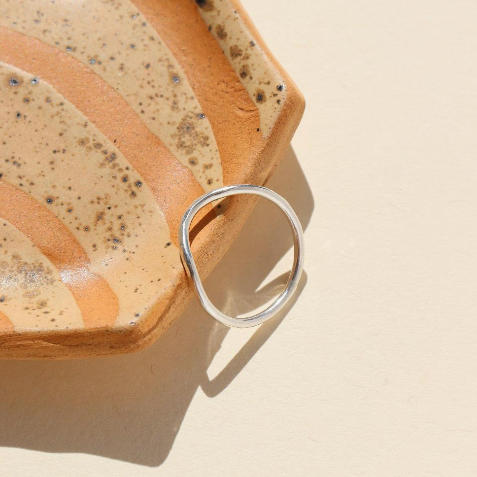 The sleek, lightly hammered band of our Plunge Ring perfectly curves along your gemstone ring, or looks cute on it's own! Available in sterling silver and 14k gold fill, the Plunge Ring not only elevates your stack with a unique shape but is a great way to mix metals creating a cool, customized look.